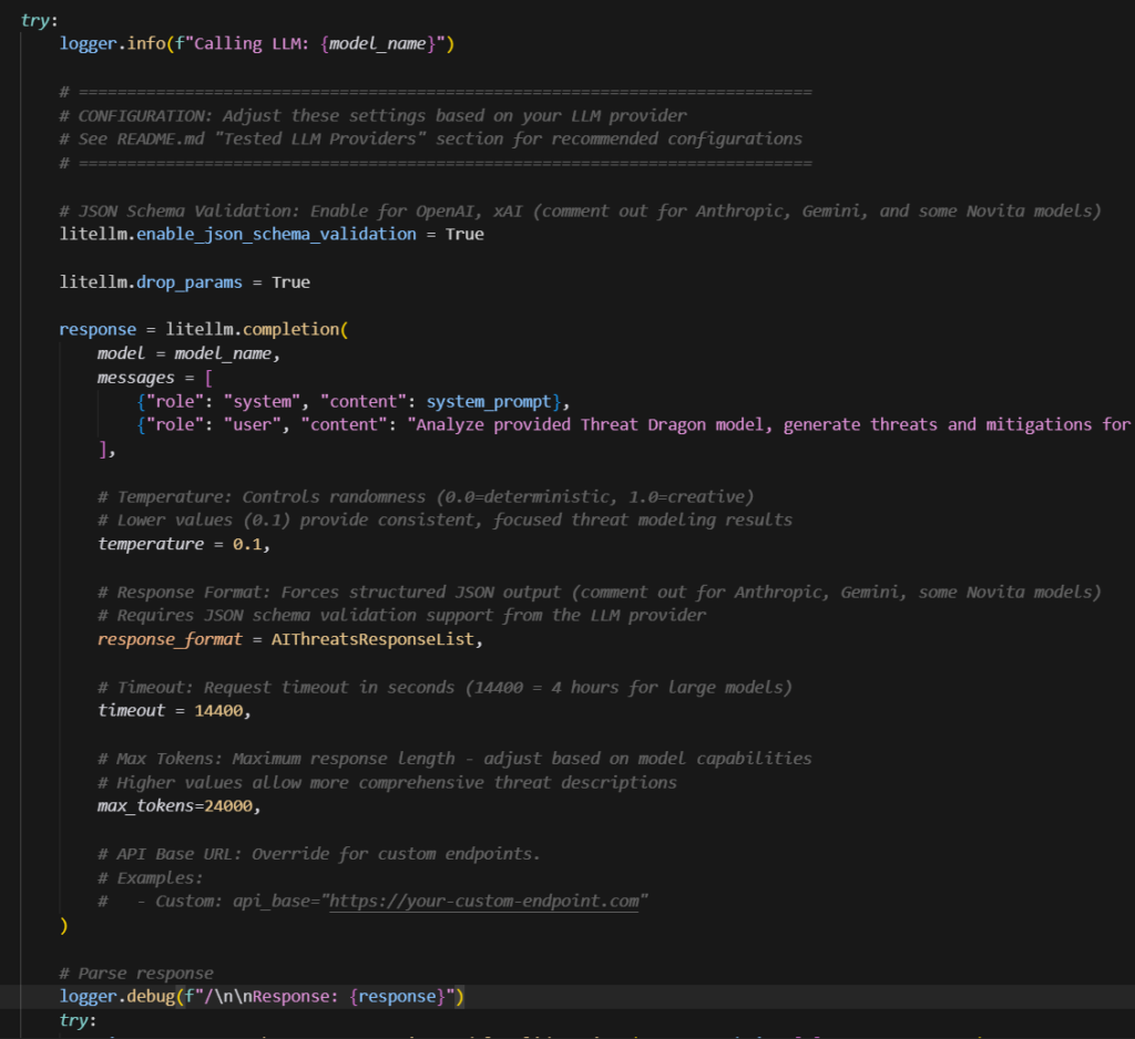 | gemini/gemini-2.5-pro | #litellm.enable_json_schema_validation = True temperature = 0.1, #response_format = AIThreatsResponseList, max_tokens=24000, |