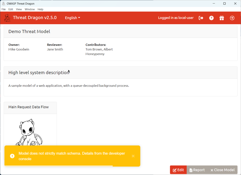 When you run the Python script, it reads your model file along with theowasp.threat-dragon.schema.V2.jsonschema.